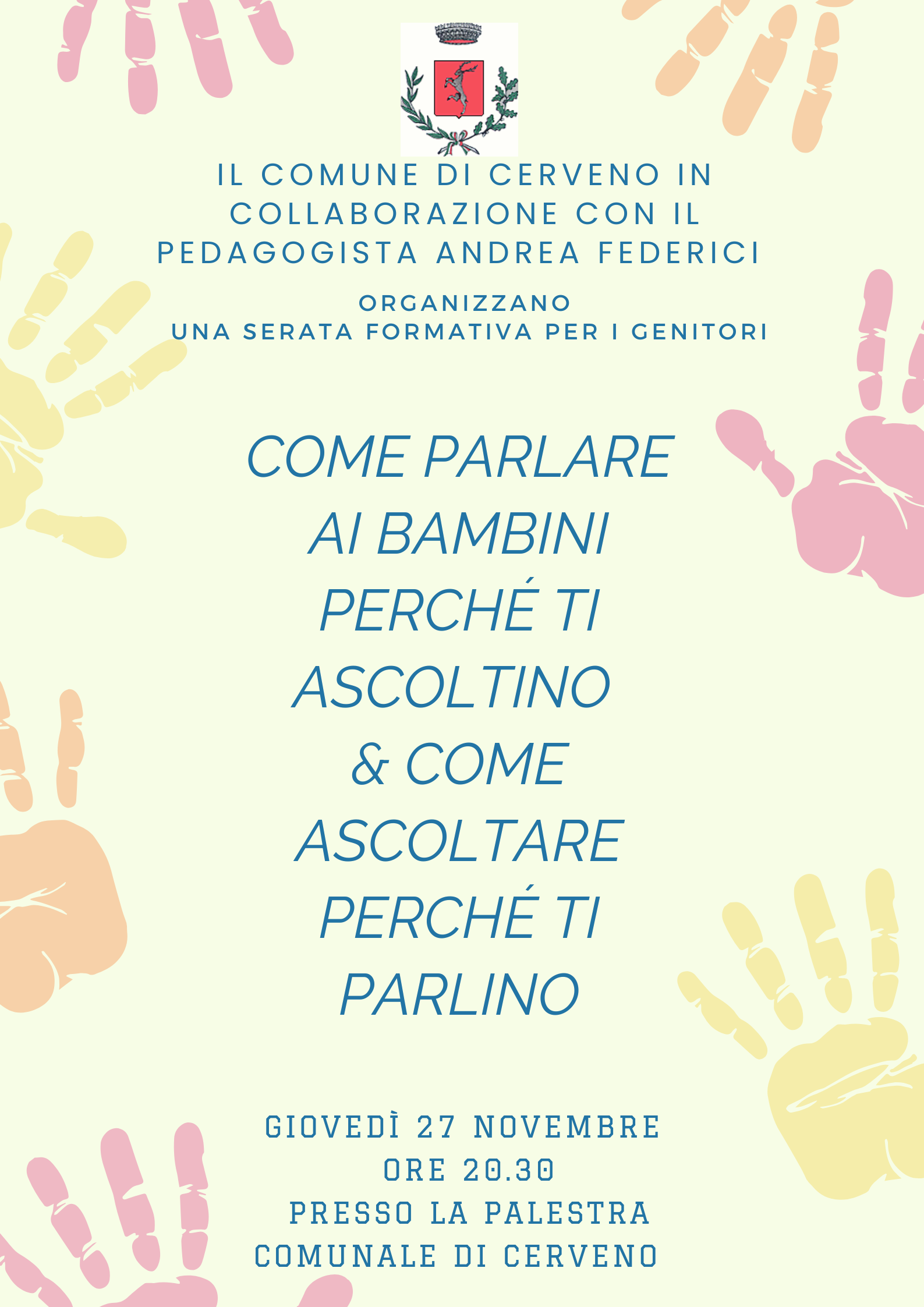 Il Comune di Cerveno, in collaborazione con il pedagogista Andrea Federici, organizza una serata formativa per i genitori.